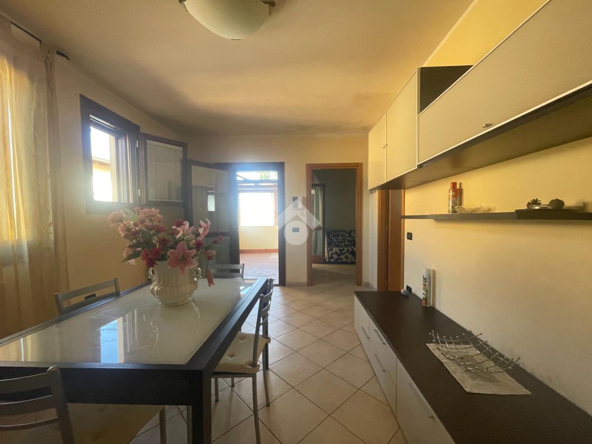 Ingresso indipendente al piano terra, l'appartamento è distribuito al primo ed ultimo piano, ofrrendo spazi luminosi. Si compone di un soggiorno con angolo cottura con affaccio al terrazzo, 2 camere, bagno finestrato con doccia, una comoda cantina al piano terra e un posto auto.